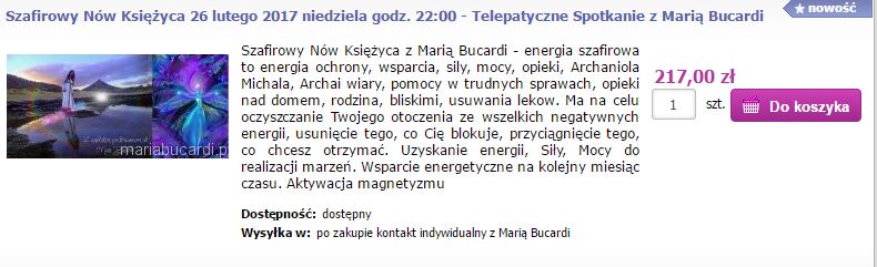 Jakich informacji potrzebuje... po zamowieniu i oplaceniu spotkania, prosze odpowiedz na moje pytania, tutaj moj adres E-Mail: maria.bucardi@gmail.com 1. Imie, nazwisko, data urodzenia, miejsce urodzenia, aktualne miejsce pobytu w czasie spotkania osoby, ktora bedzie sie laczyc ze mna telepatycznie. 2. Jesli to mozliwe zdjecie - calej sylwetki lub tylko twarzy (prosze zdjecia bez okularow przeciwslonecznych). 3. O usuniecie jakich problemow, trudnosci czy innych pragniesz prosic Sily Wyzsze 4. O przyciagniecie czego, pomoc w jakiej sprawie, pragniesz prosic Sily Wyzsze 5. Czy jest jakas szczegolna sytuacja w ktorej potrzebujesz energii, sily, mocy, pomocy Sily Wyzszej, wsparcia, jesli tak, prosze o opis... 6. Czy jest jakas cecha, ktora chcesz rozwinac z pomoca Sily Swiatla np. pewnosc siebie, spokoj w kazdej sytuacji, harmonia? 7. Jesli pragniesz, by Sily Wyzsze pomogly jakiejs osobie np. dziecku, prosze o imie, nazwisko, date urodzenia i ewentualnie zdjecie, oraz miejsce urodzenia i aktualne miejsce pobytu tej osoby i opis w jakiej sprawie potrzebujesz pomocy dla tej osoby.